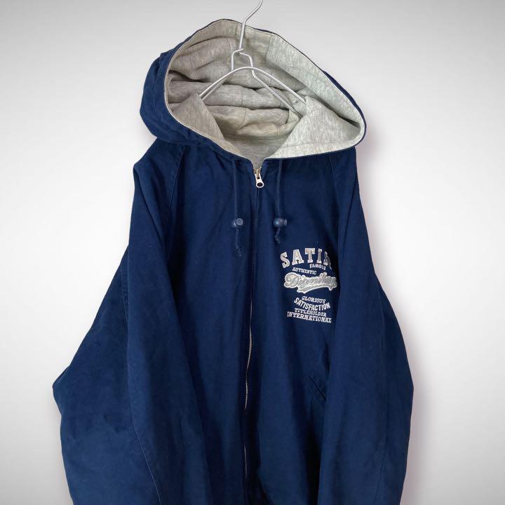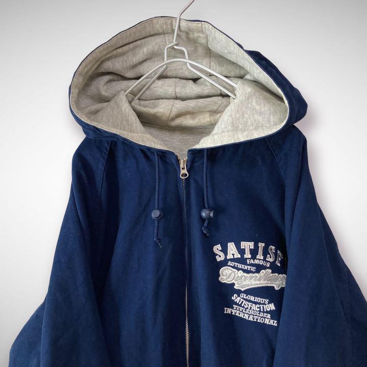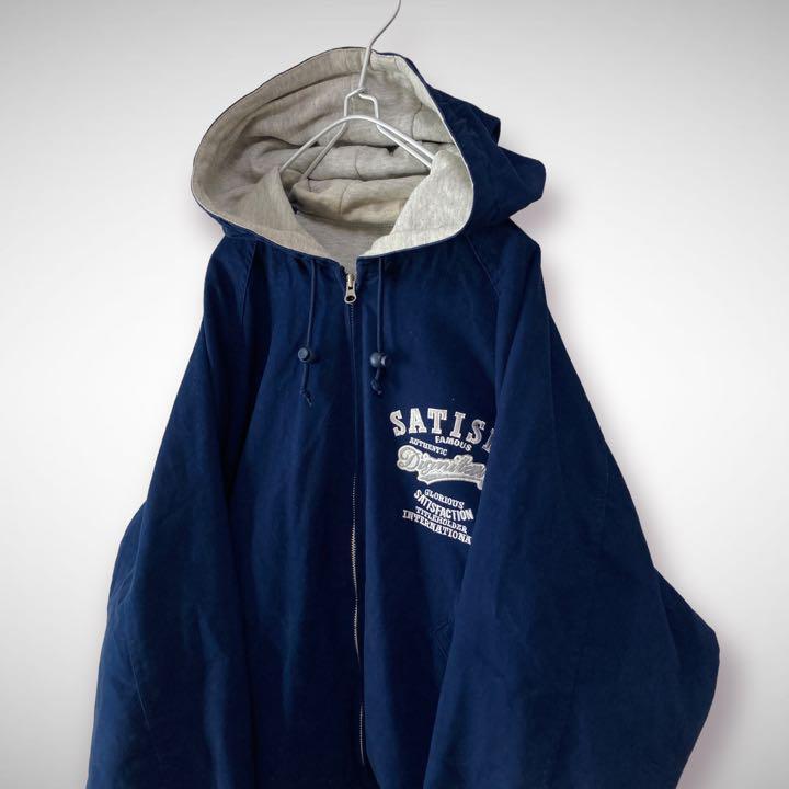 スタジャン ブルゾン XXL 3L ネイビー 刺繍 ワッペン ゆるダボ ビッグシルエット
