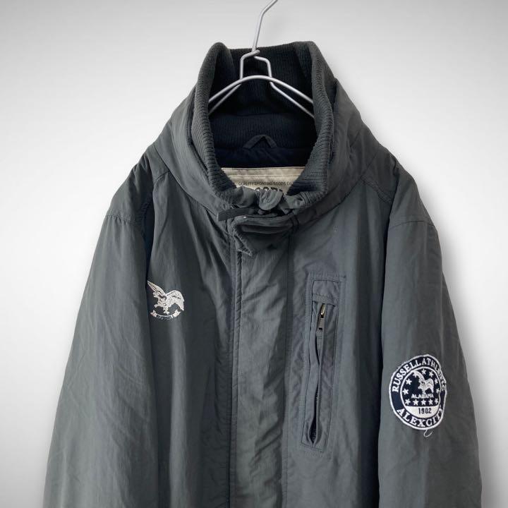 russell athletic ラッセル ブルゾン フライトジャケット ナイロン Lサイズ 刺繍ロゴ ワッペン 古着