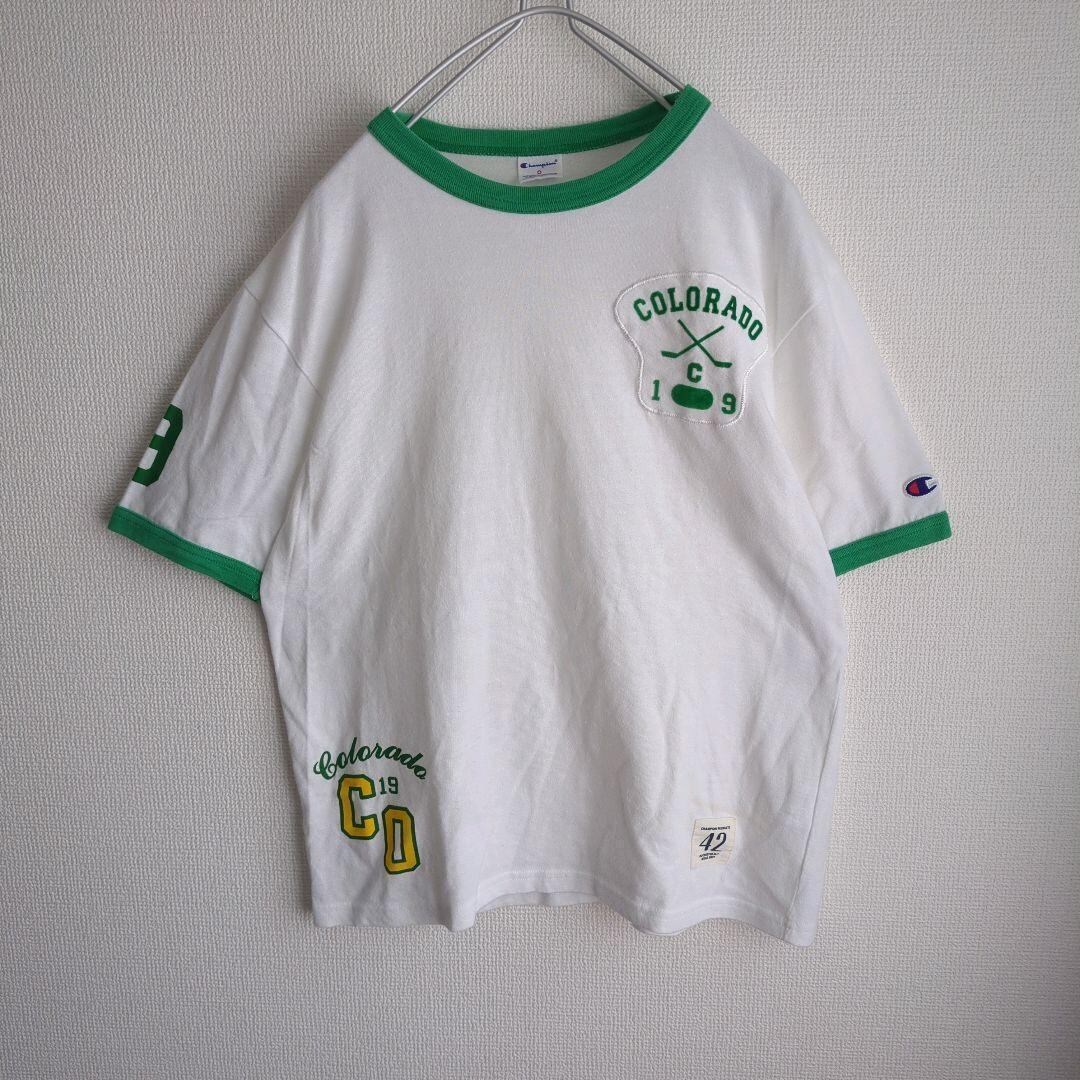 champion チャンピオン リンガーTシャツ ワッペン ロゴ ホワイト