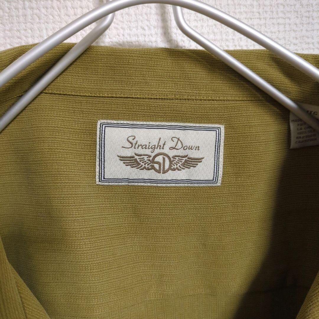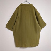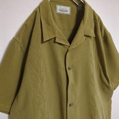 半袖シャツ 刺繍 ストライプ ライン オープンカラー ウッドボタン カーキ