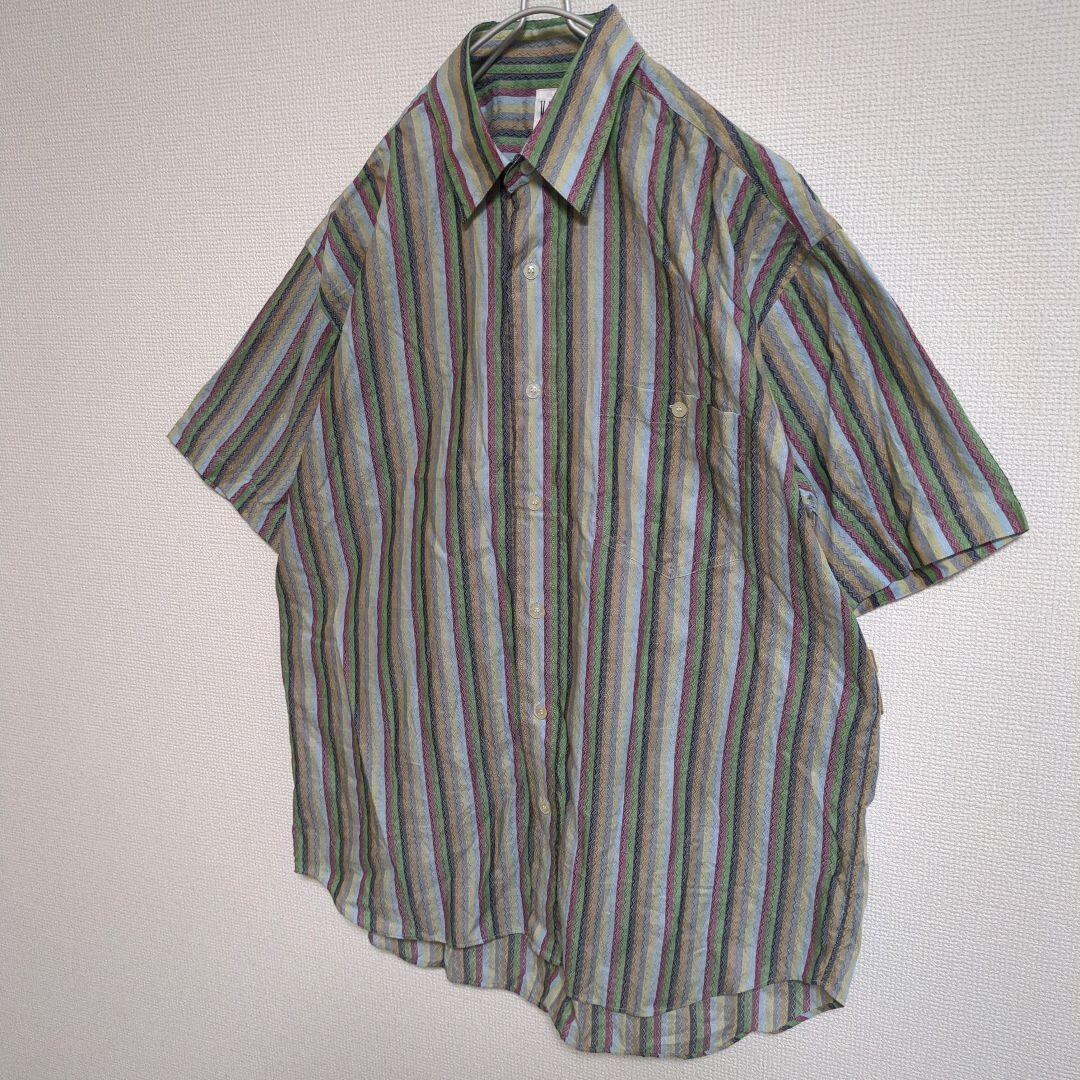 ストライプシャツ 半袖 マルチカラー カラフル ビビット レトロ感 イタリア