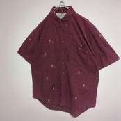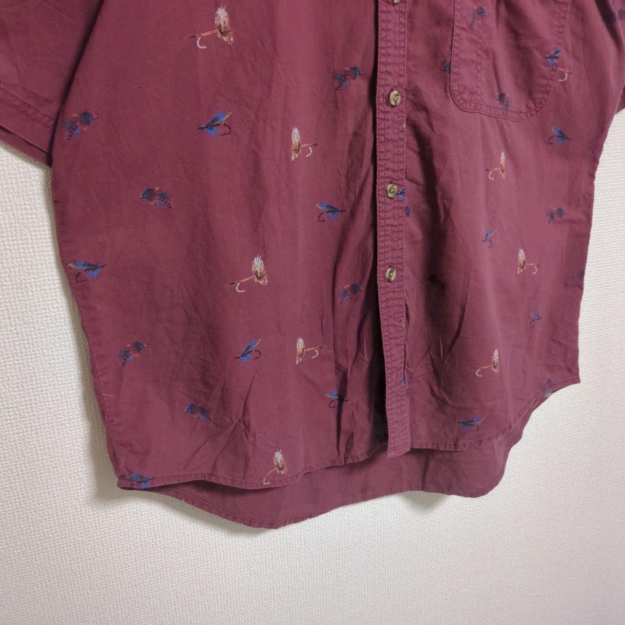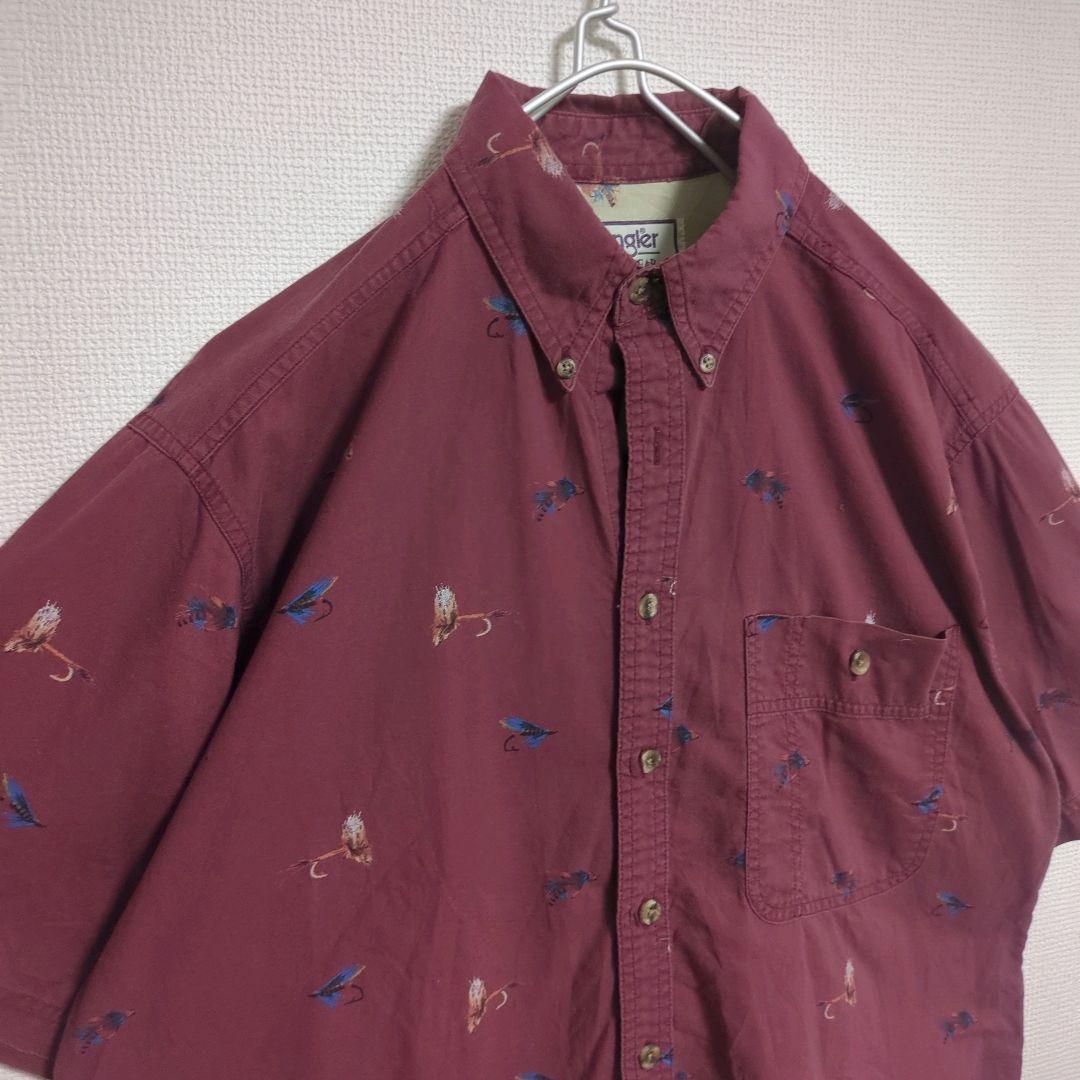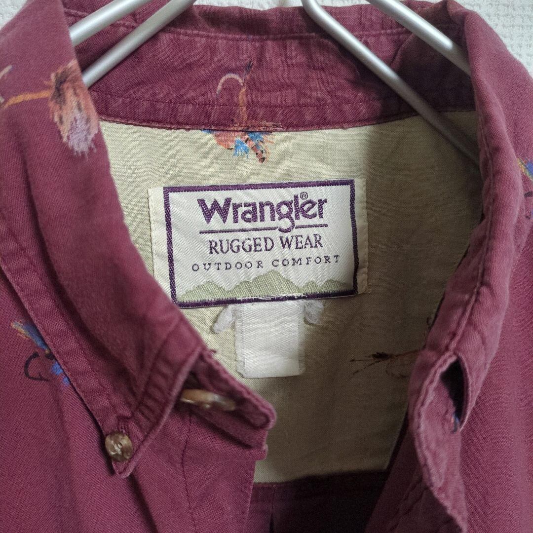 wrangler 総柄シャツ フィッシング キャンプ 胸ポケット エンジ