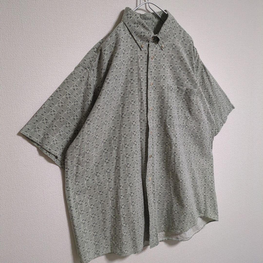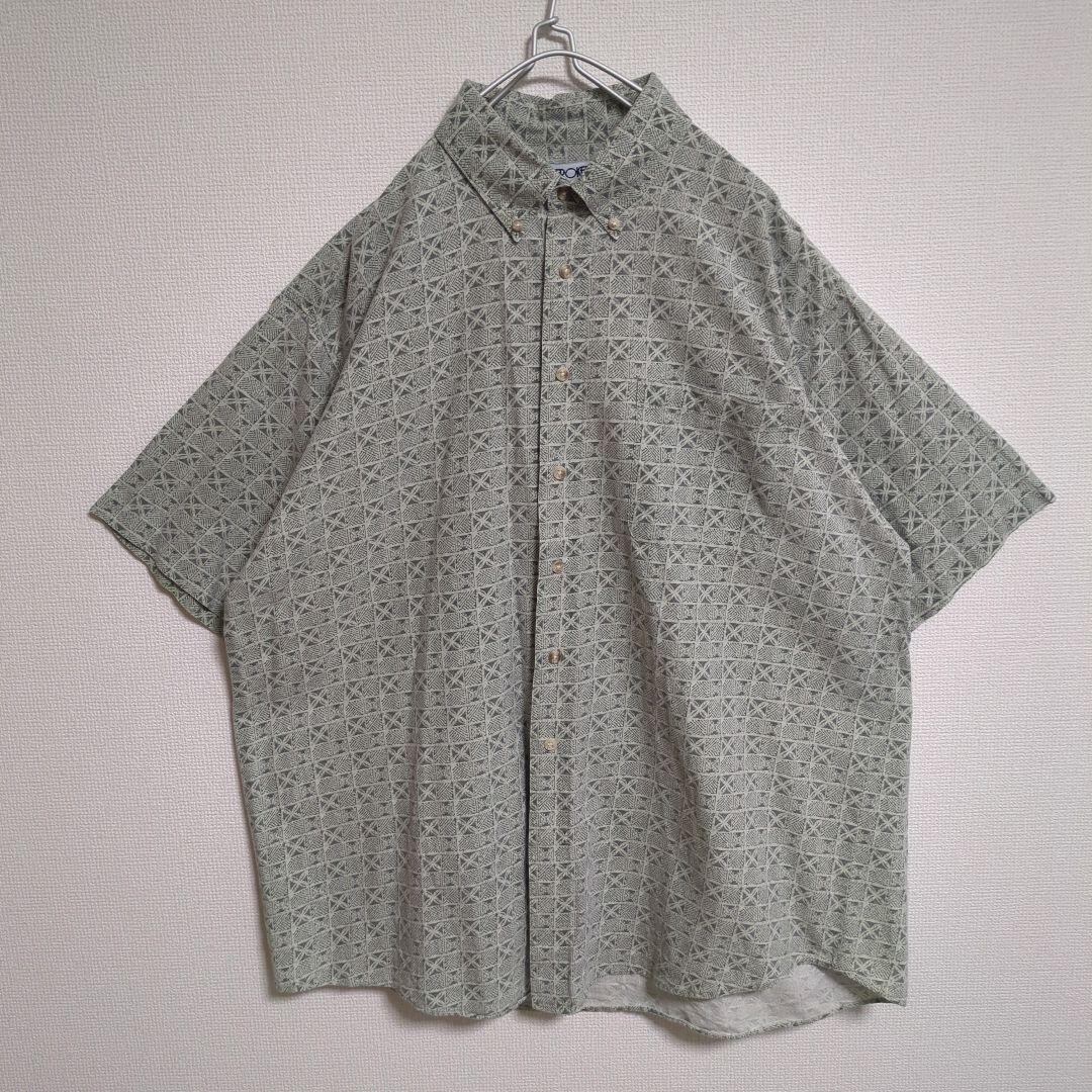 cherokee 総柄シャツ チェック 胸ポケット グリーン アロハ風 XLサイズ