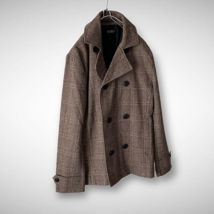 ★ピーコート ジャケット ダブル チェック柄 レトロ風 古着★