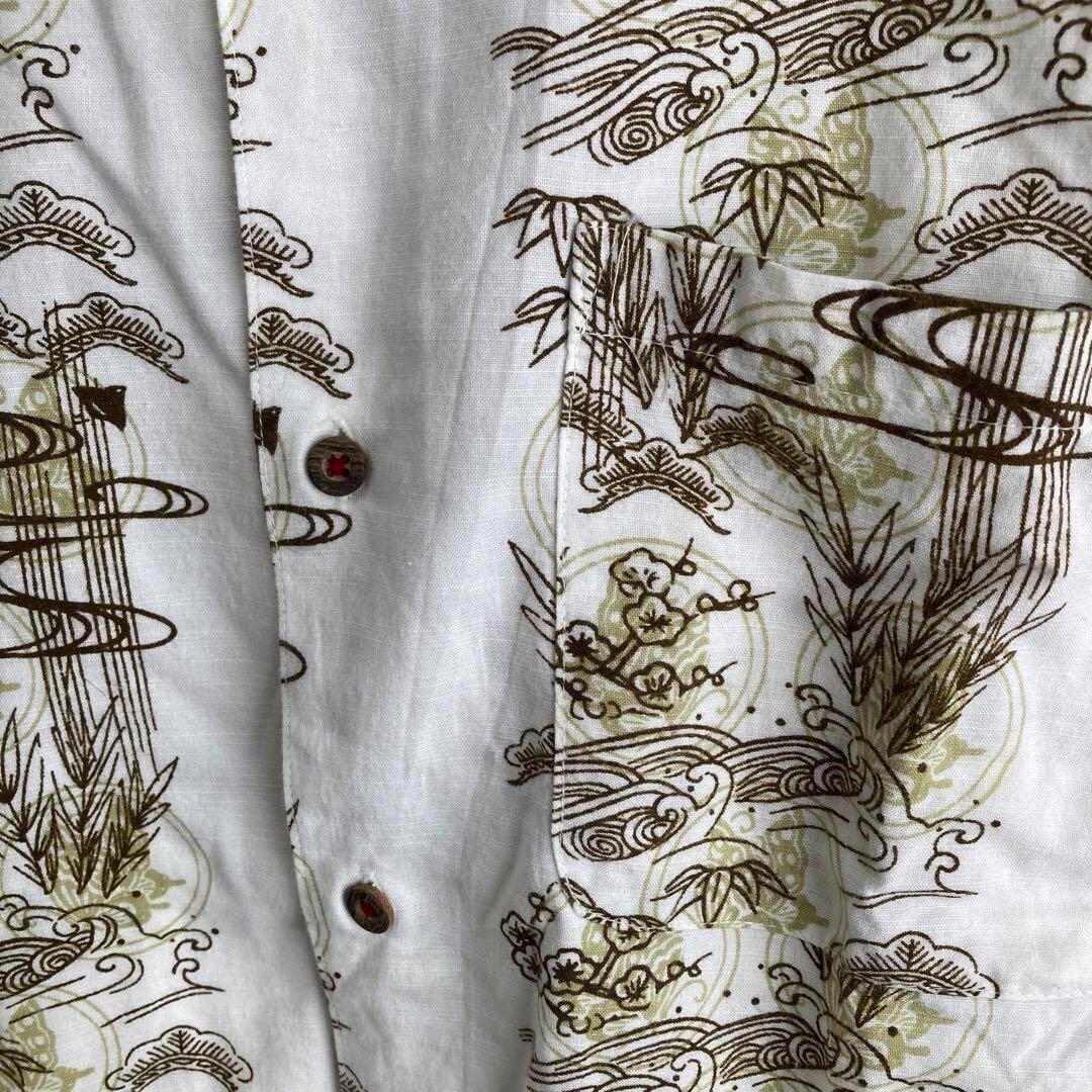 総柄シャツ イラスト 和柄 チャイニーズ オープンカラー ウッドボタン