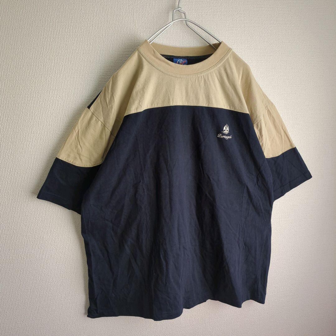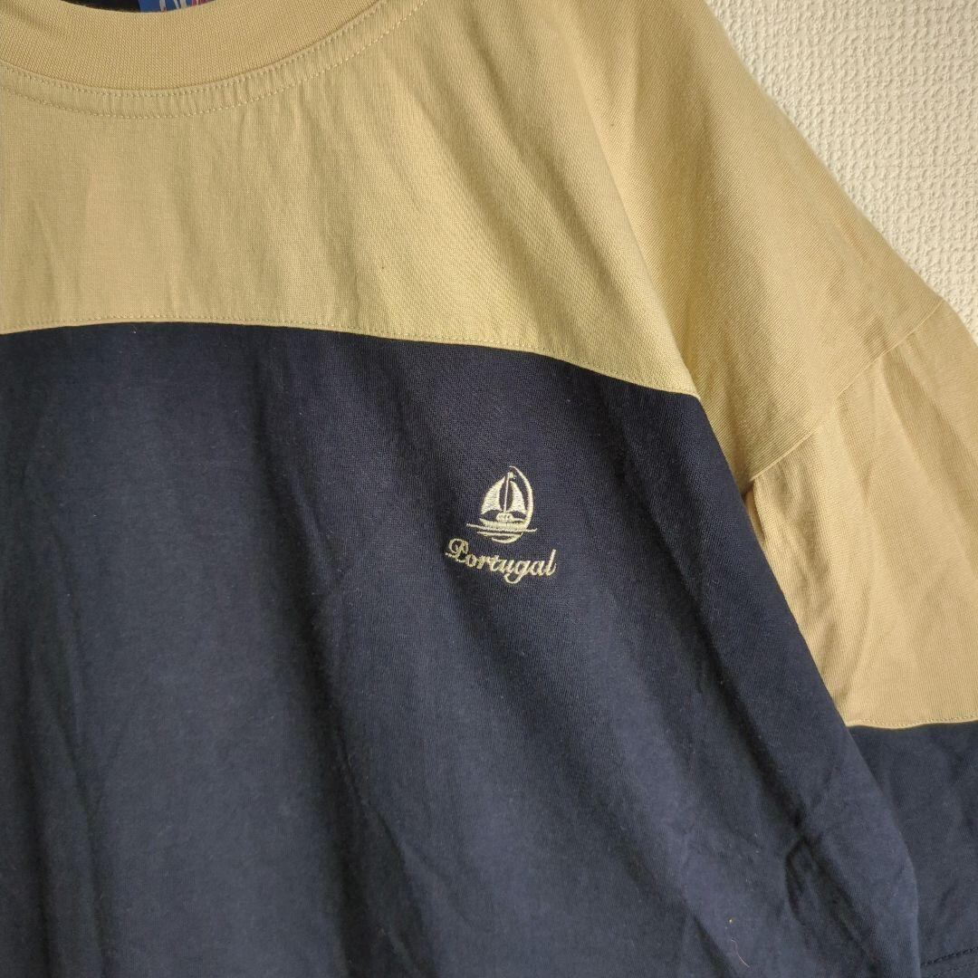 刺繍Tシャツ XL ワンポイント 刺繍ロゴ 切替 ゆるダボ ポルトガル製