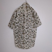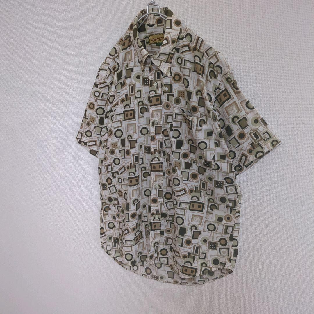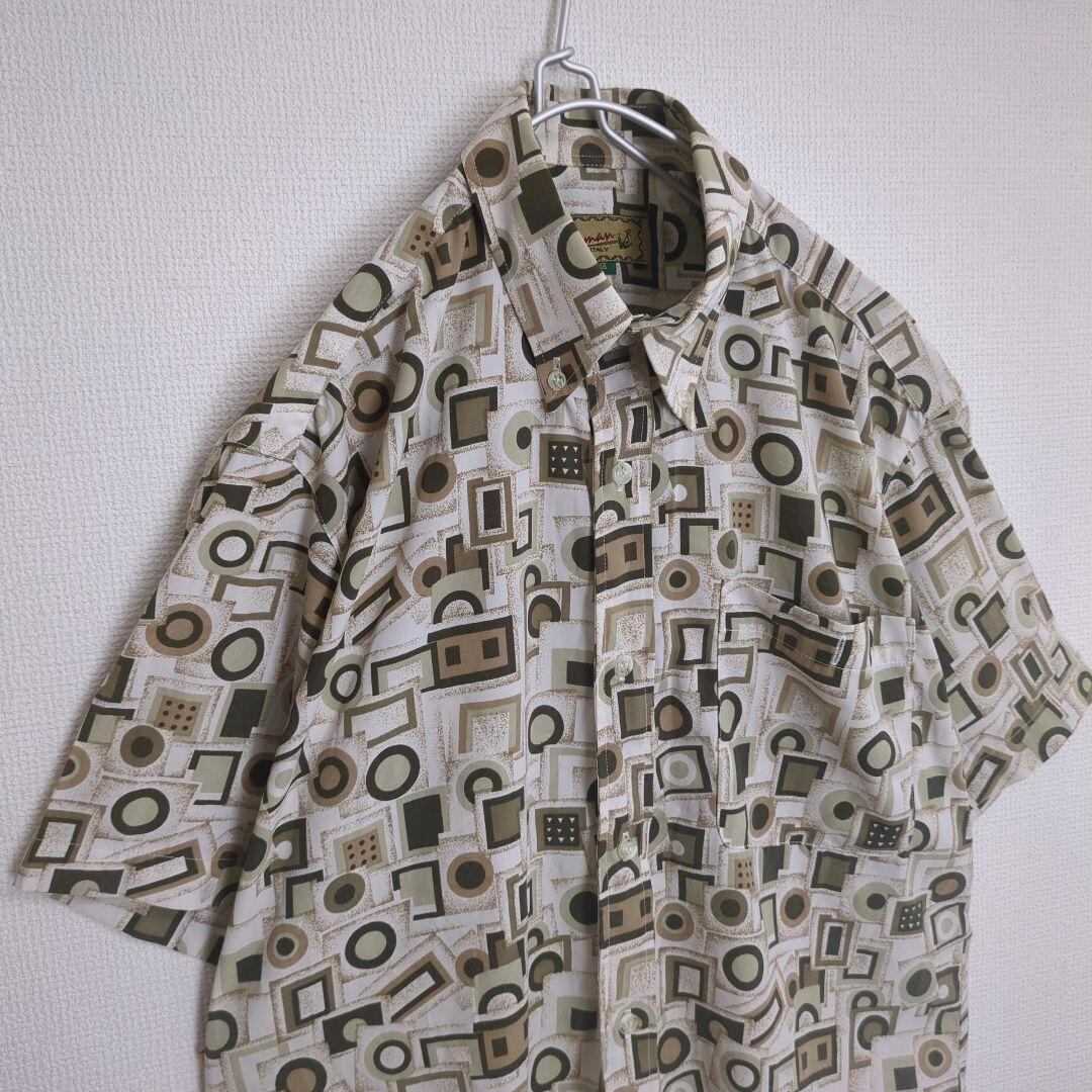 総柄シャツ 半袖 ブロック 幾何学 イタリア ベージュ