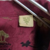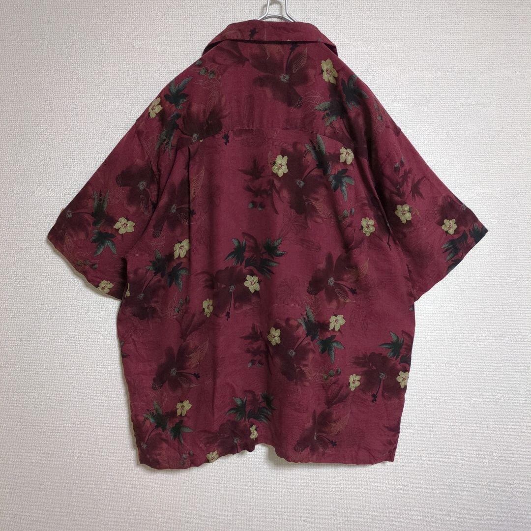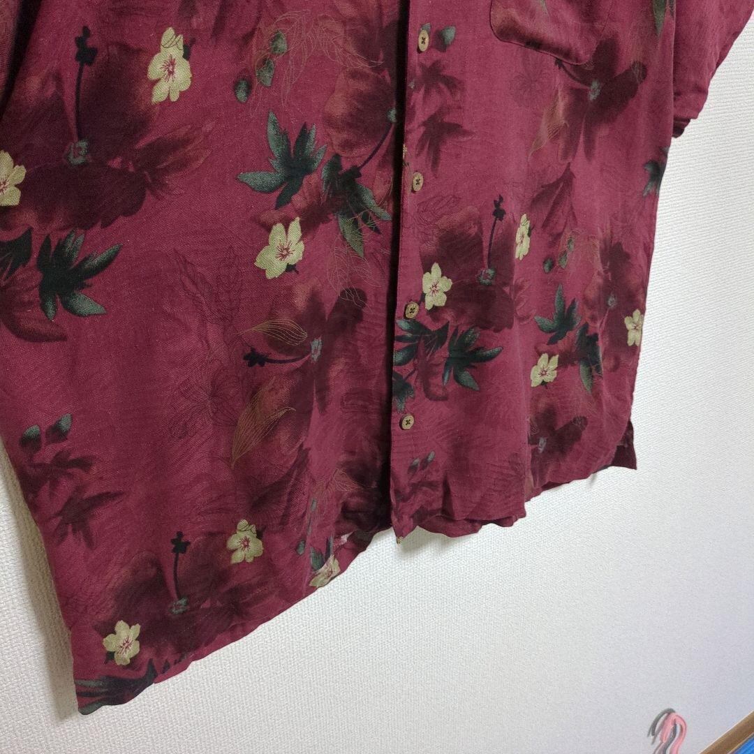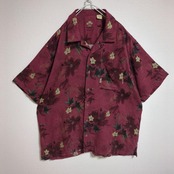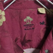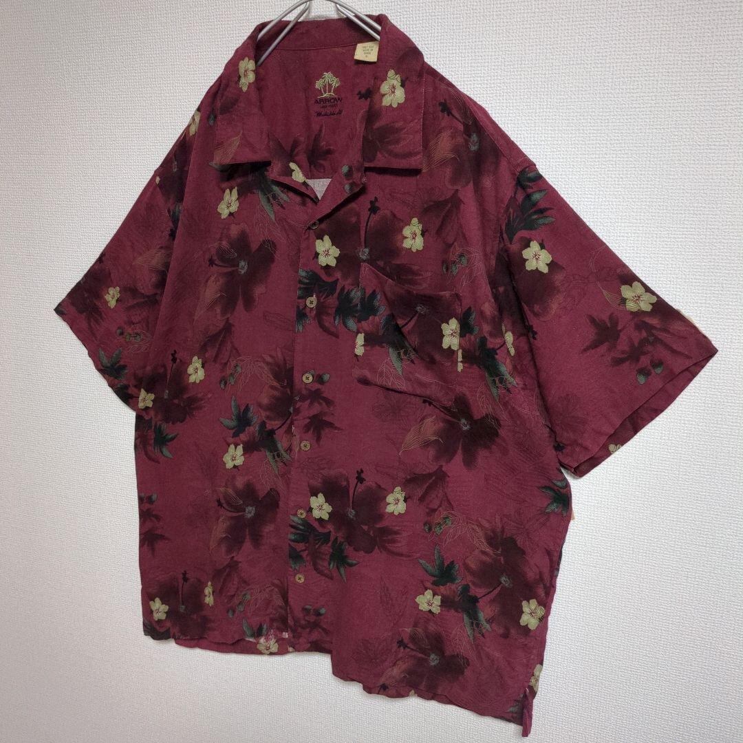 ARROW アロハシャツ 花柄 ボタニカル ウッドボタン オープンカラー エンジ