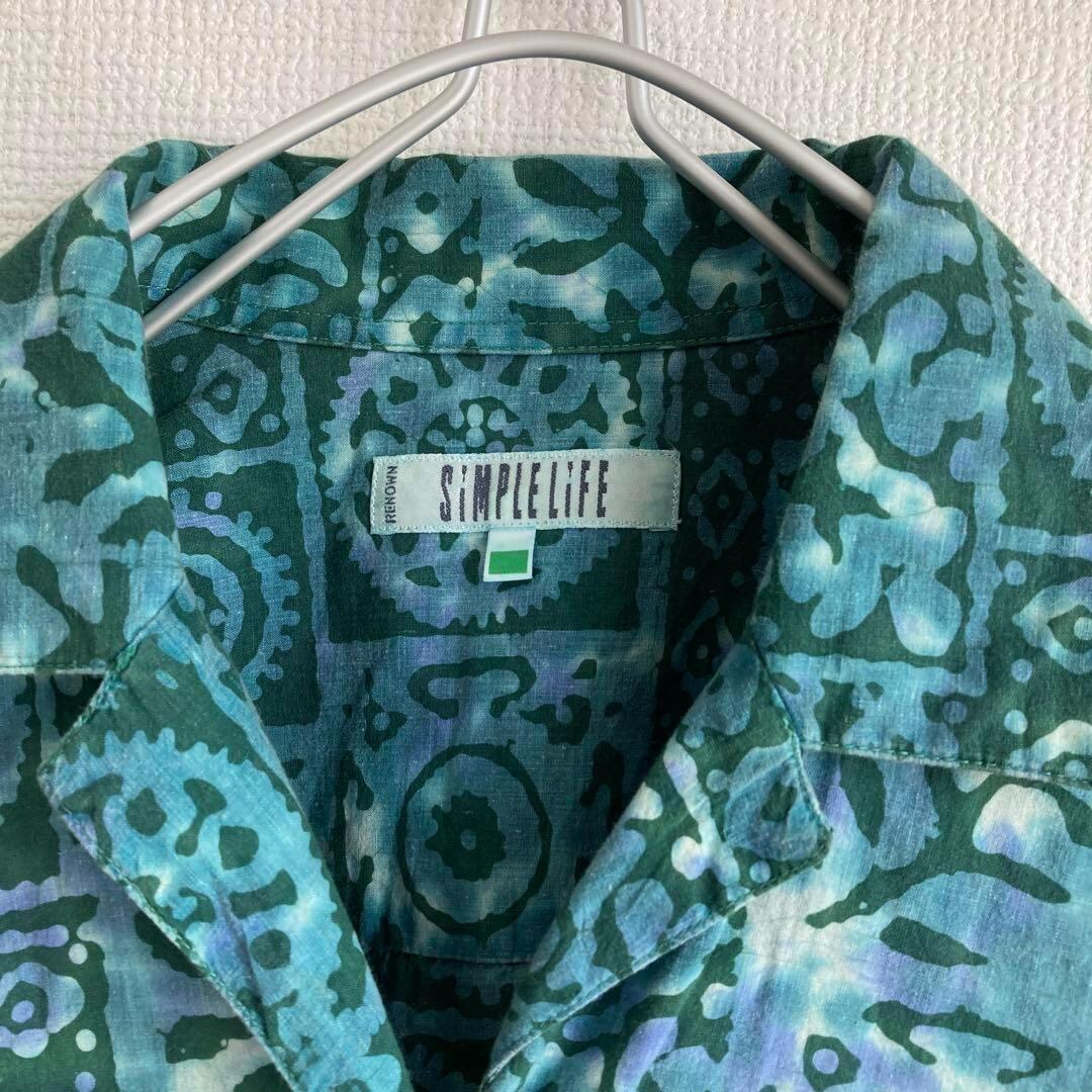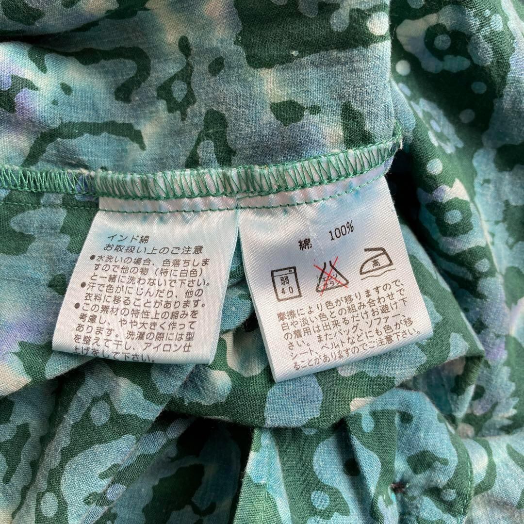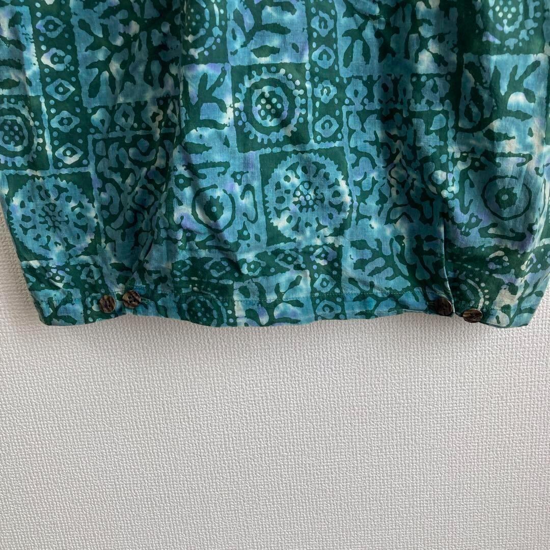 総柄シャツ インド綿 ココナッツボタン オープンカラー チロリアン