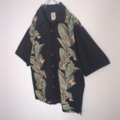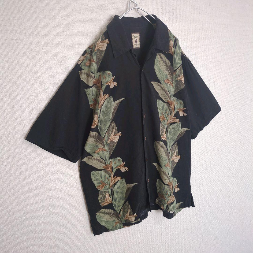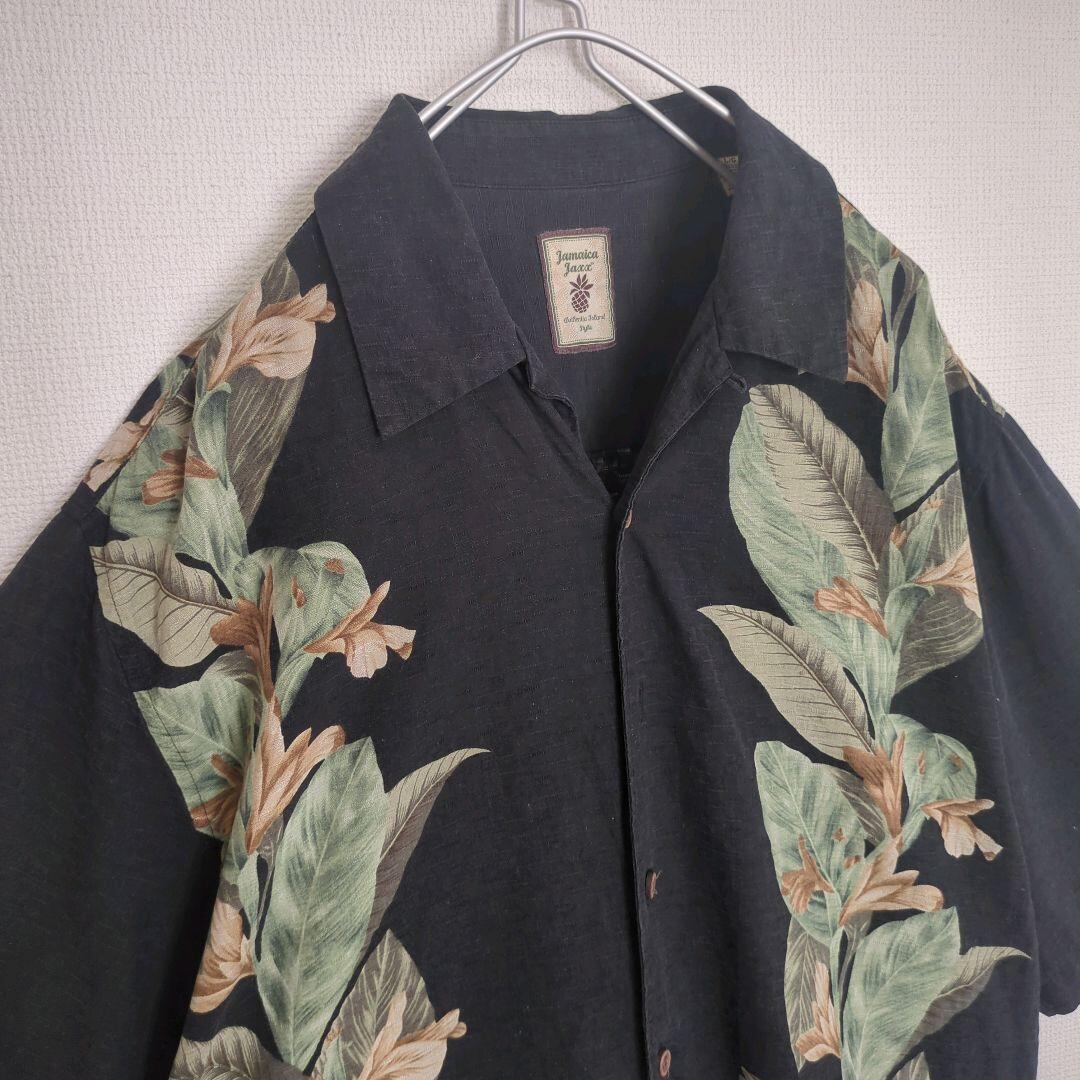 jamaica jaxx アロハシャツ 開襟 ウッドボタン 花柄 ボタニカル ストライプ ブラック