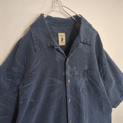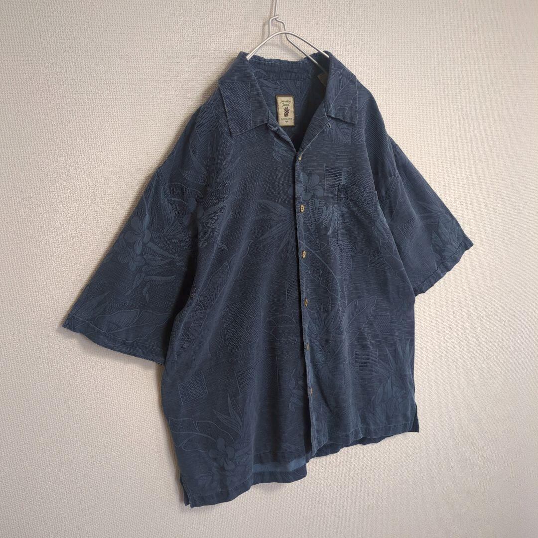 jamaica jaxx アロハシャツ 総柄 ウッドボタン シルク100% ボタニカル ブルー