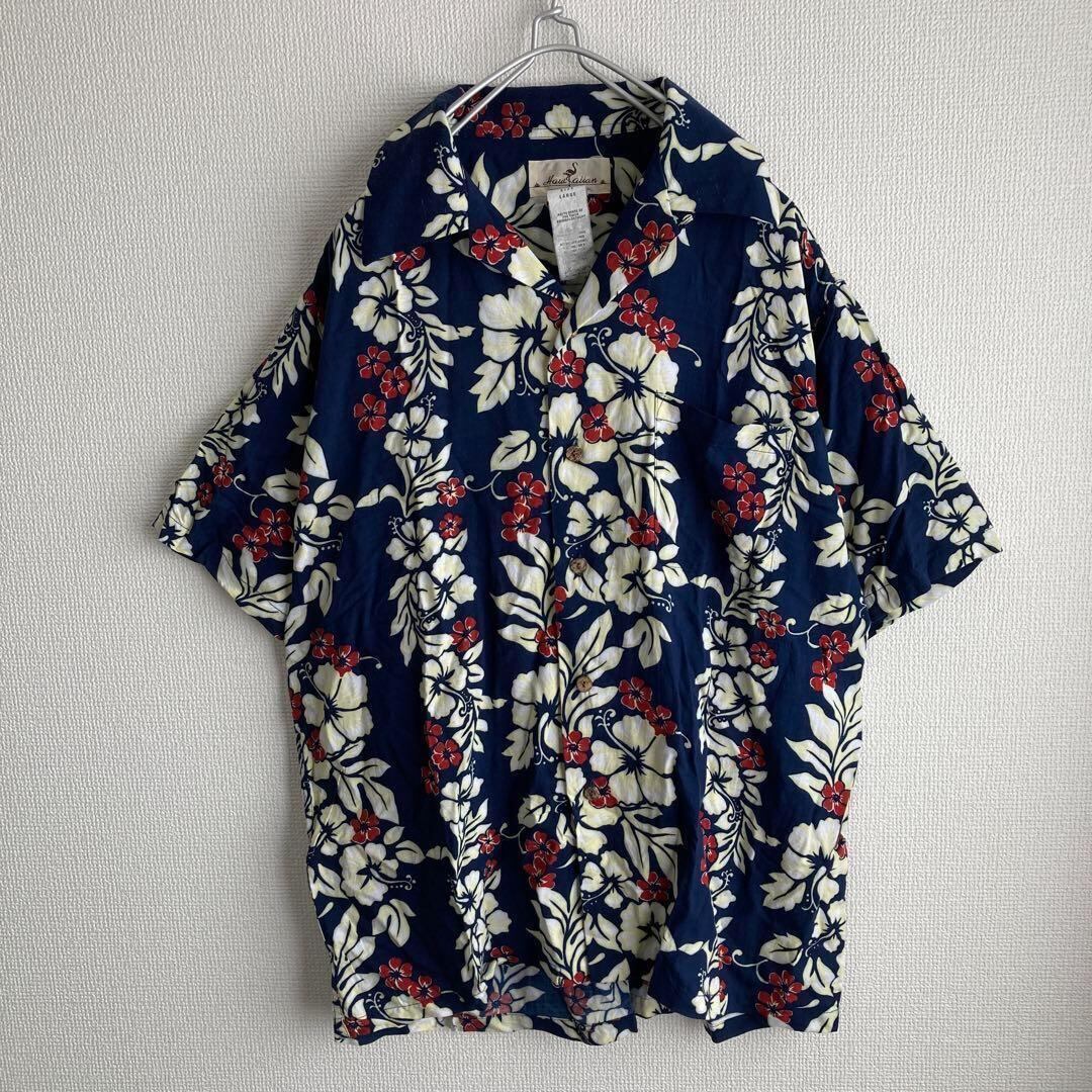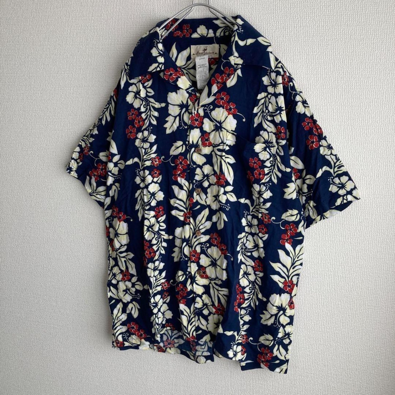 アロハシャツ 花柄 ハイビスカス ココナッツボタン レーヨンオープンカラー