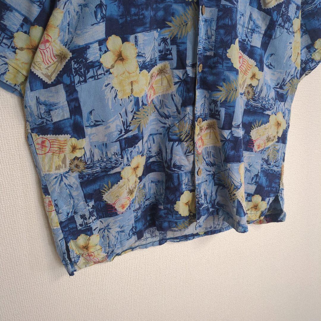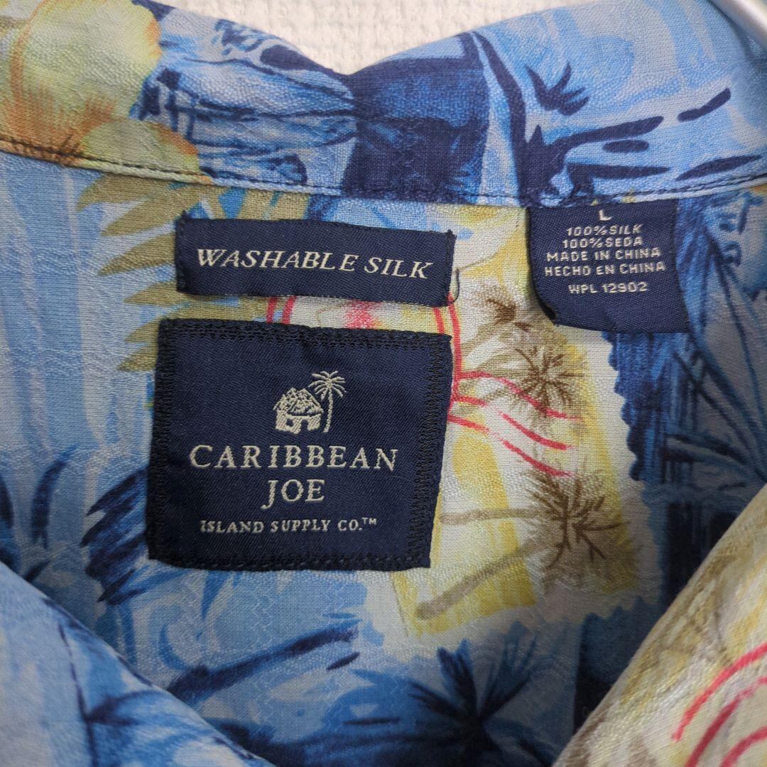 caribbeanjoe アロハシャツ 開襟 ウッドボタン イラスト 花柄 ボタニカル ブルー