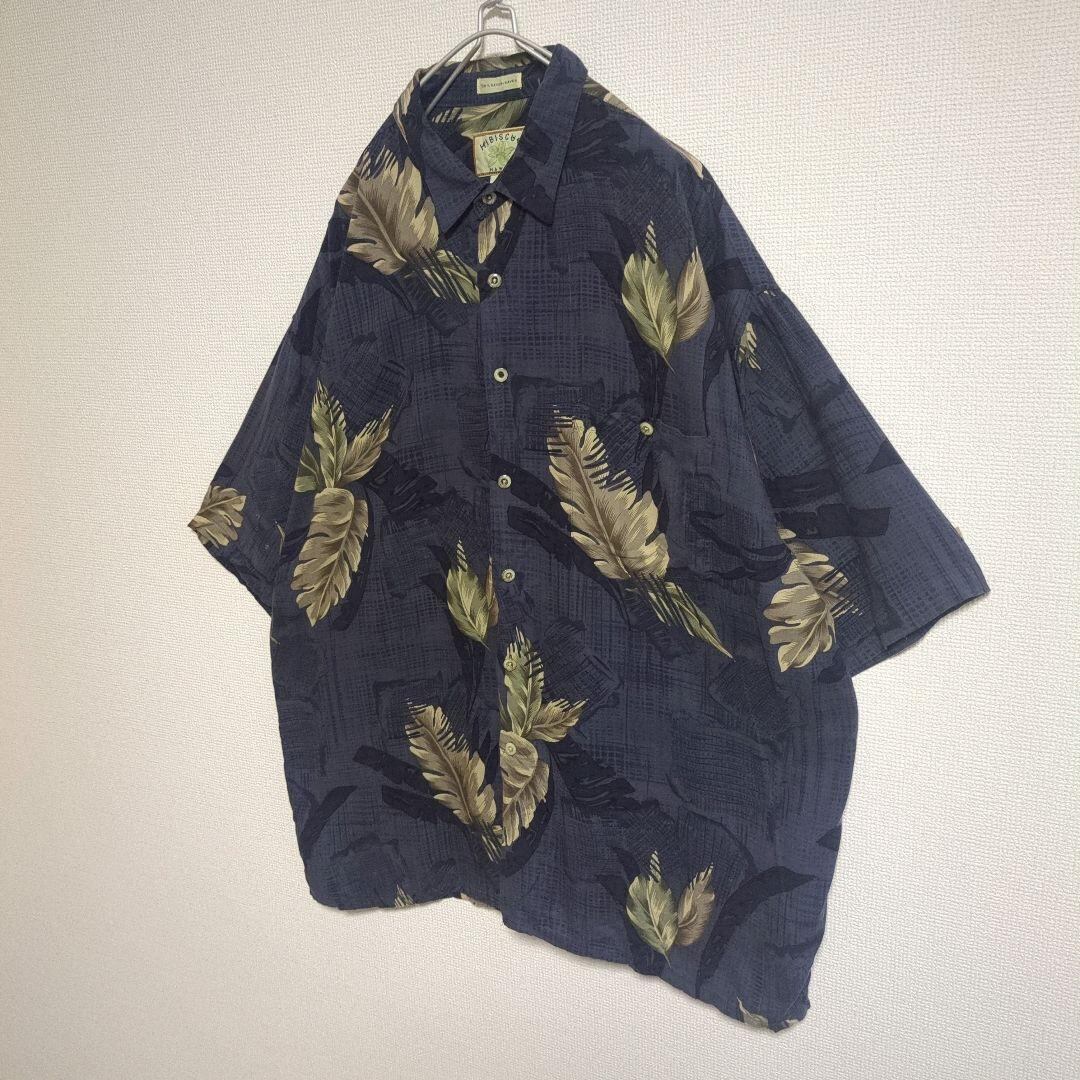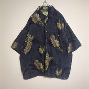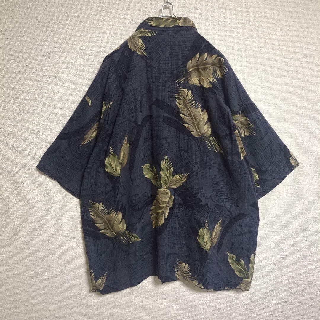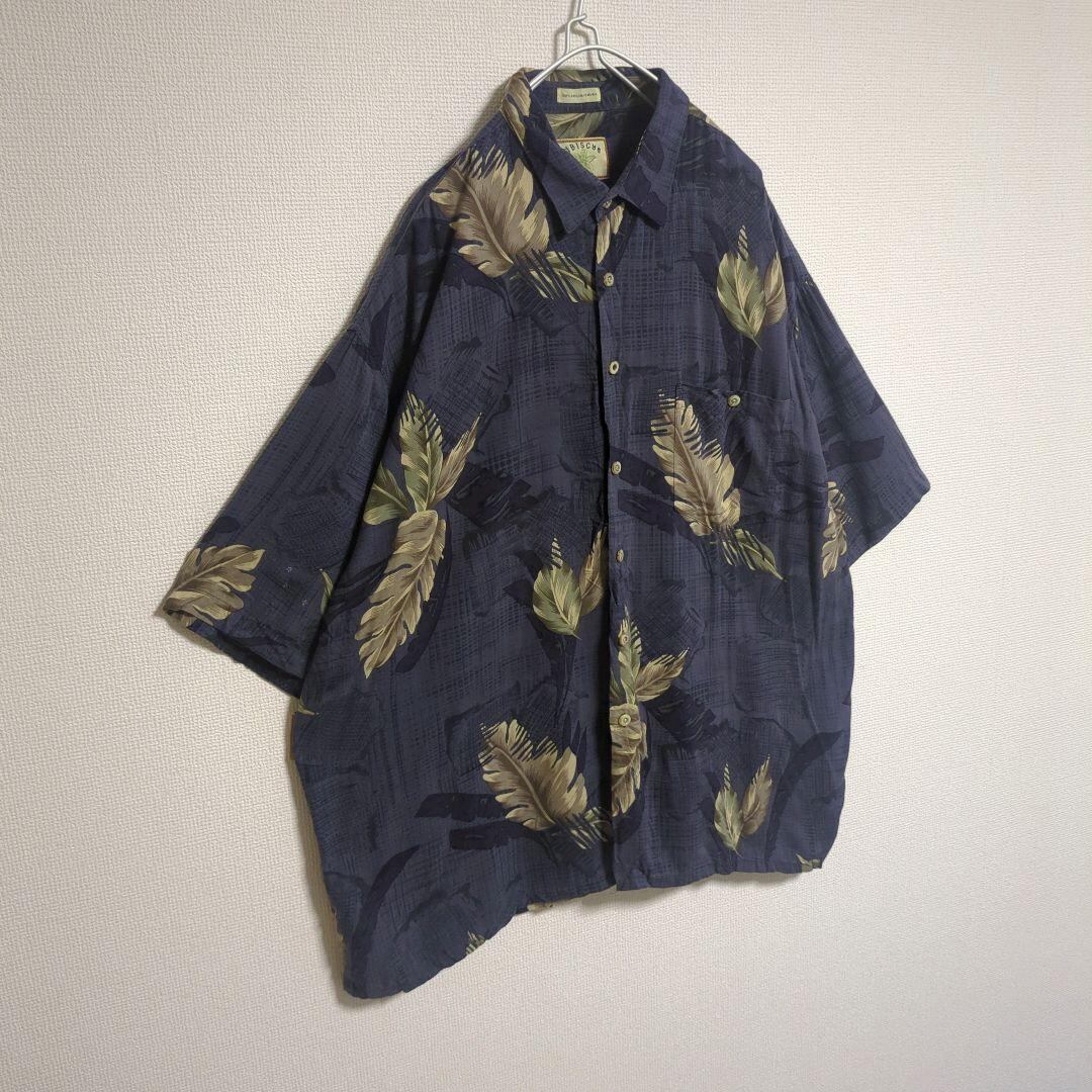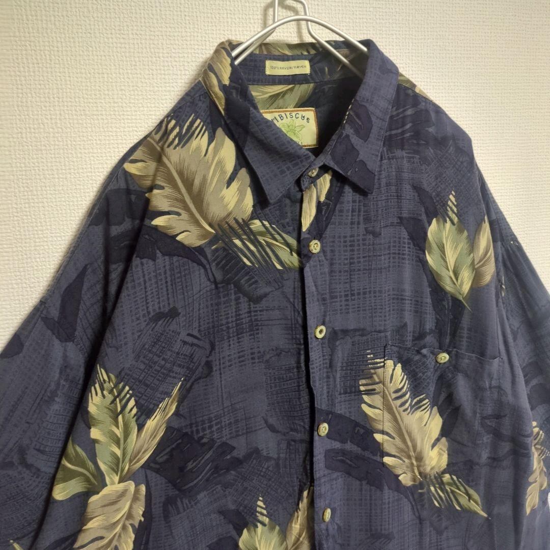 アロハシャツ リーフ ボタニカル ハワイ デザインボタン ネイビー