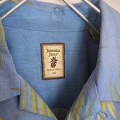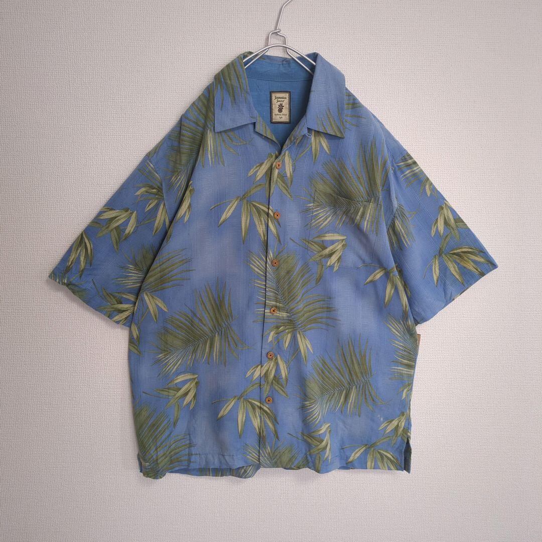 jamaicajaxx アロハシャツ リーフ ウッドボタン ボタニカル 開襟 胸ポケット ブルー