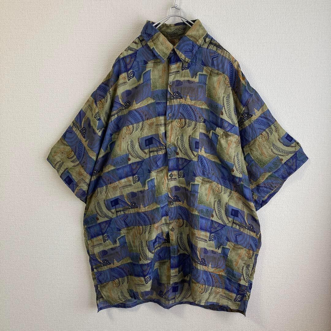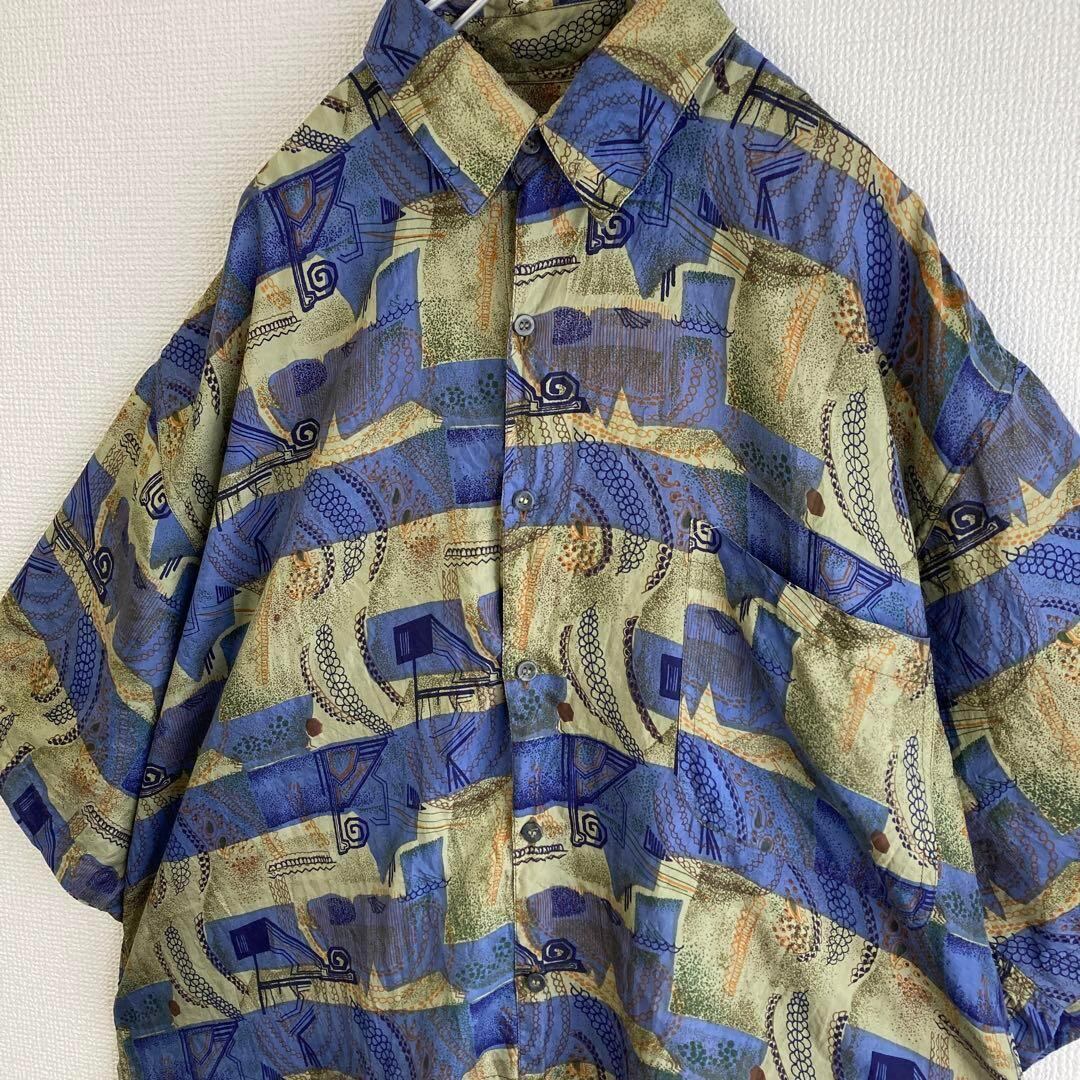 総柄半袖シャツ シルク100% ペイズリー チロリアン XL