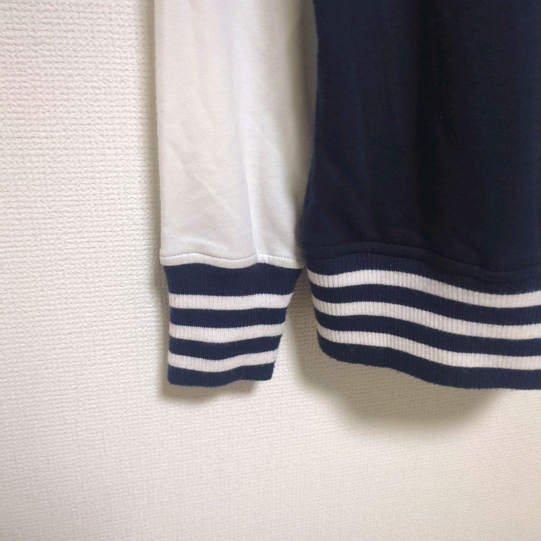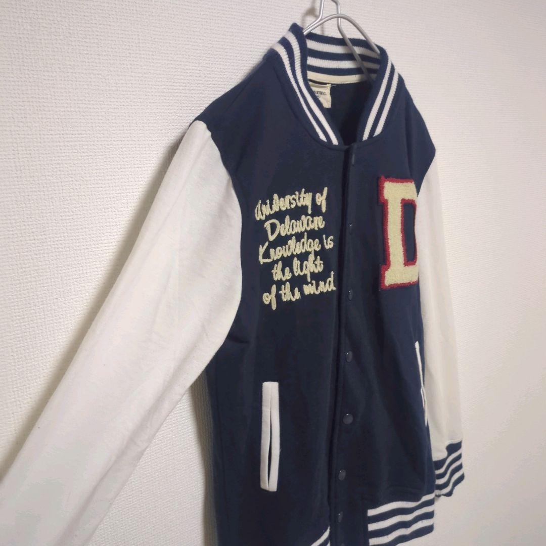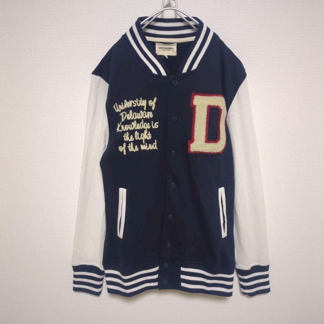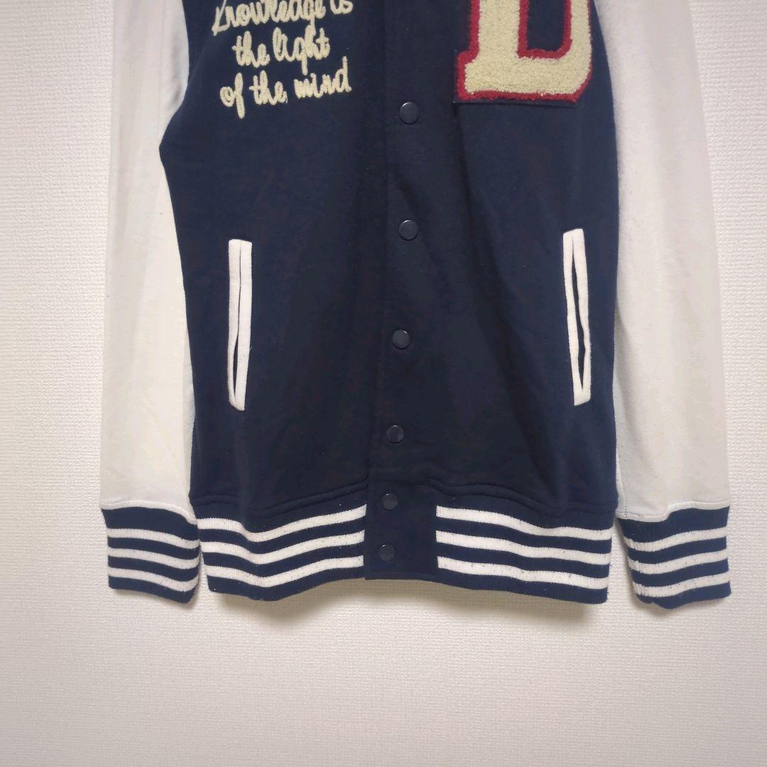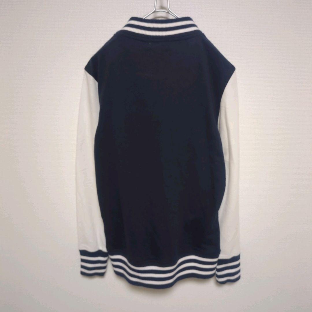 ★スタジャン スウェット 刺繍ロゴ ワッペン ネイビー ホワイト 古着★