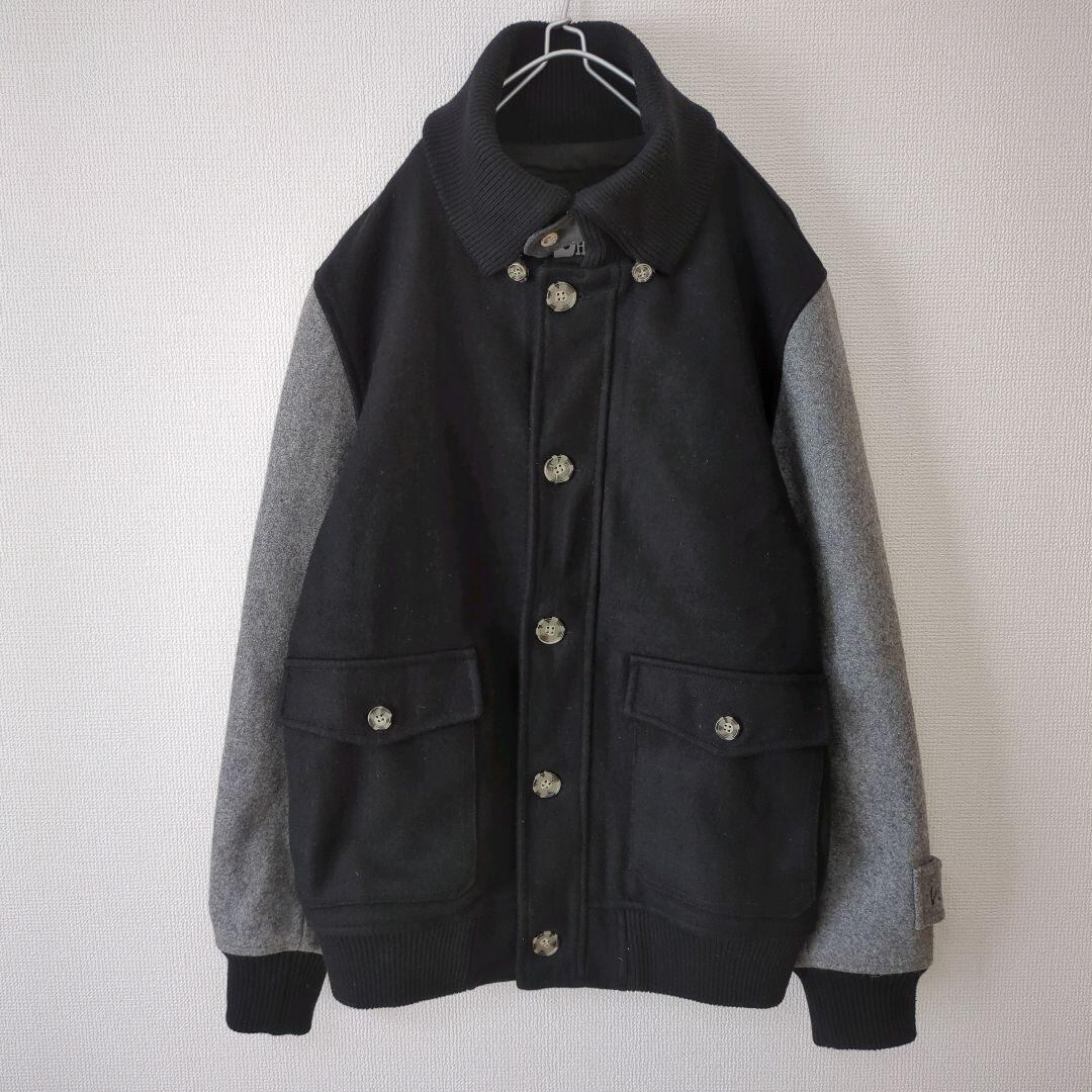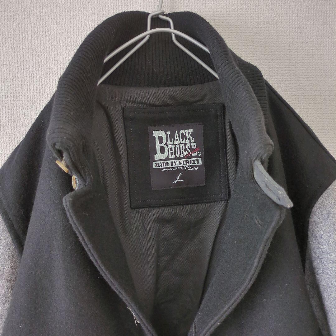 ★BLACKHORSE スタジャン メルトン ウール デザインボタン ブラック グレー★