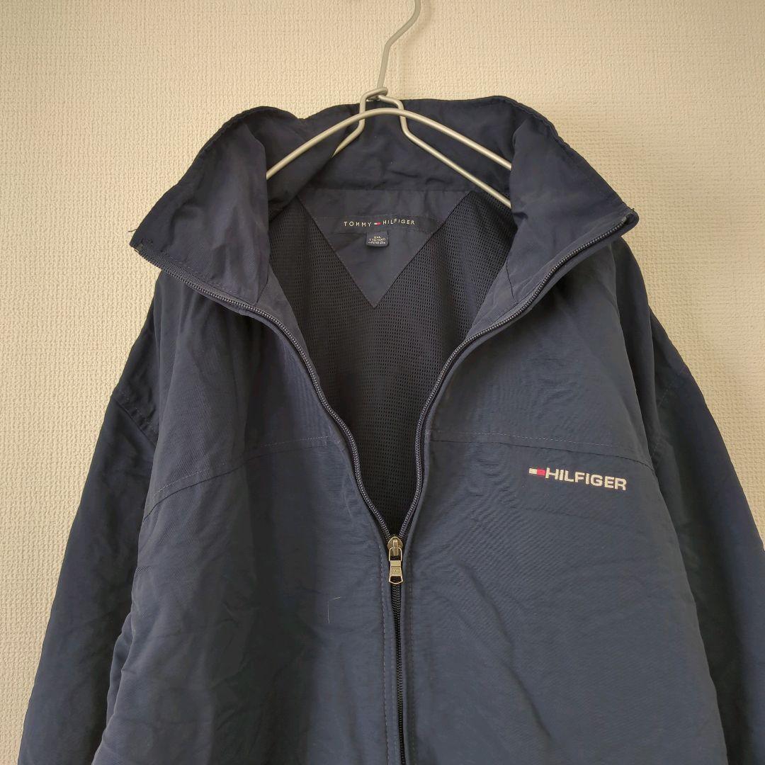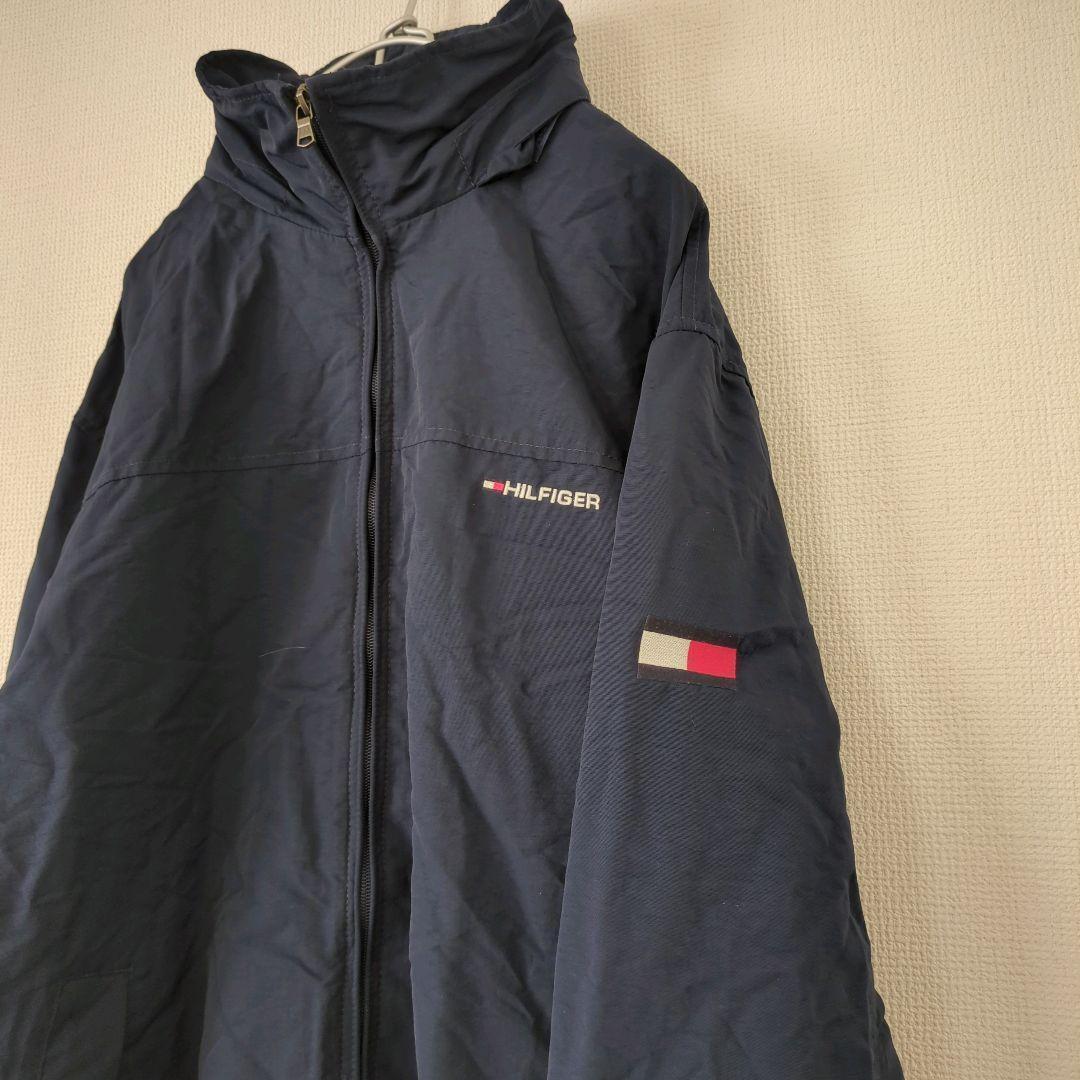 TOMMYHILFIGER トミーヒルフィガー ナイロンジャケット 刺繍ロゴ フード ネイビー